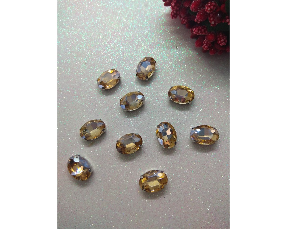 Стразы в цапах "Овал" цв. шампань, цена за 1 шт