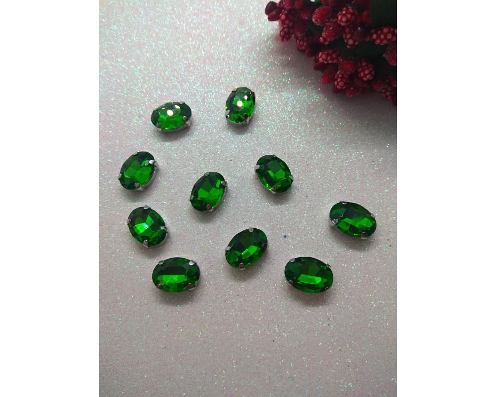 Стразы в цапах "Овал" цв. зеленый, цена за 1 шт