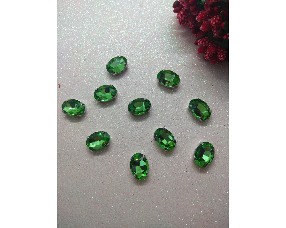 Стразы в цапах "Овал" цв. светло-зеленый, цена за 1 шт