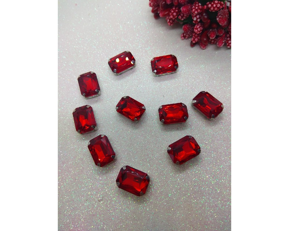 Стразы в цапах "Прямоугольник" цв. красный, цена за 1 шт