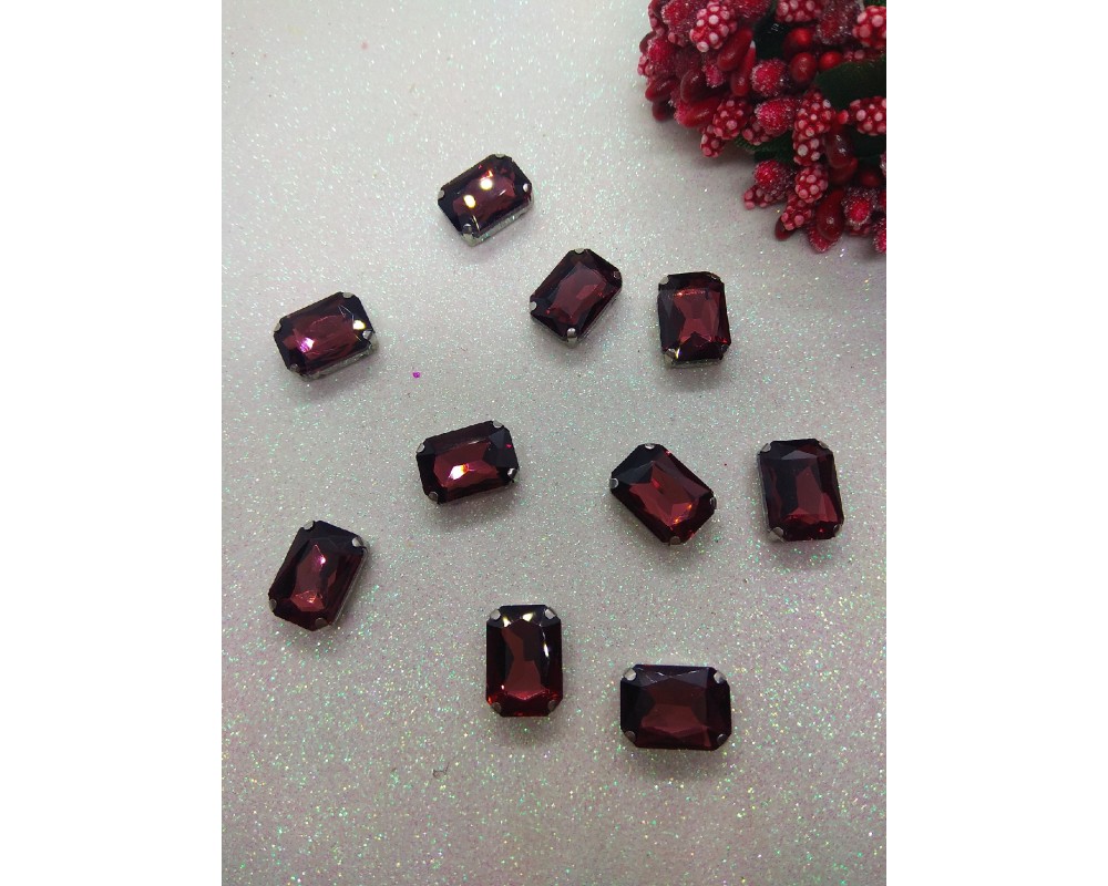 Стразы в цапах "Прямоугольник" цв. винный, цена за 1 шт