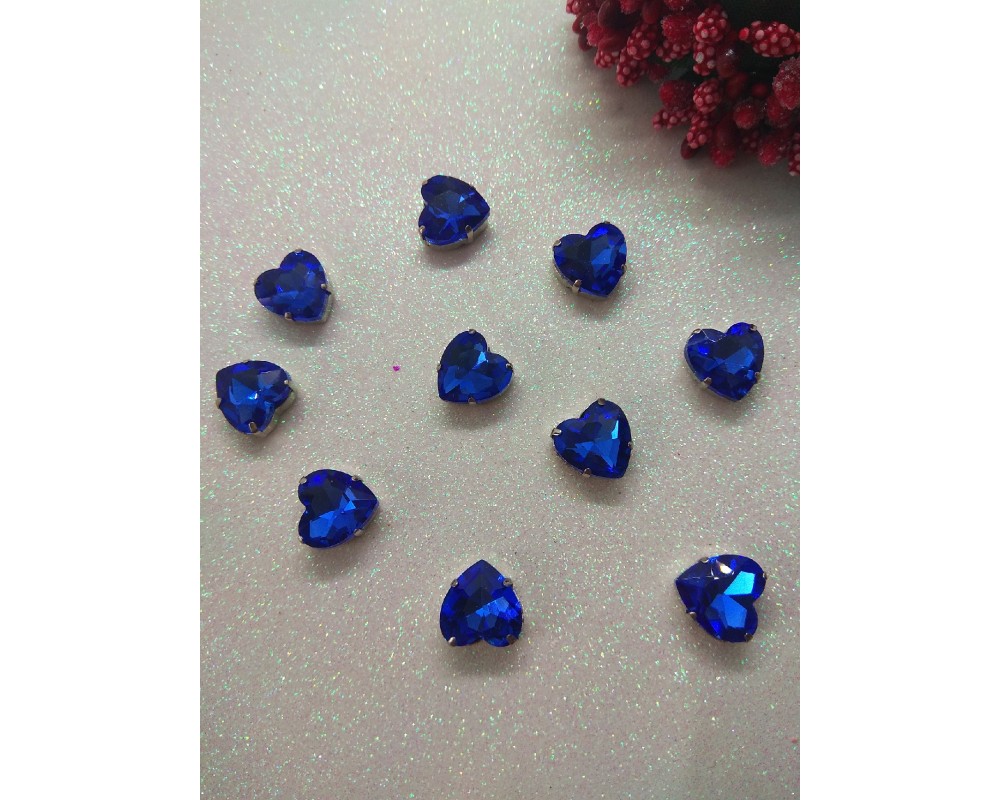 Стразы в цапах "Сердце" 12 мм цв. глубокий синий, цена за 1 шт