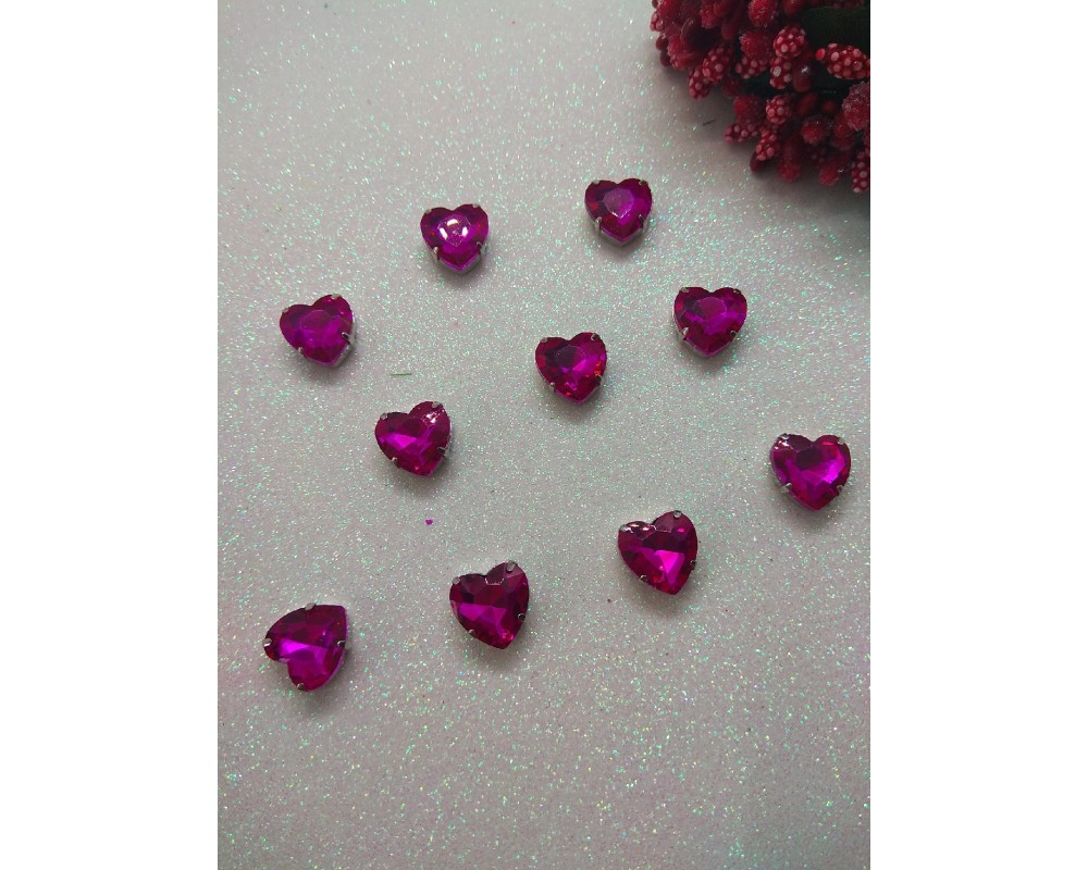 Стразы в цапах "Сердце" 12 мм цв. малиновый, цена за 1 шт