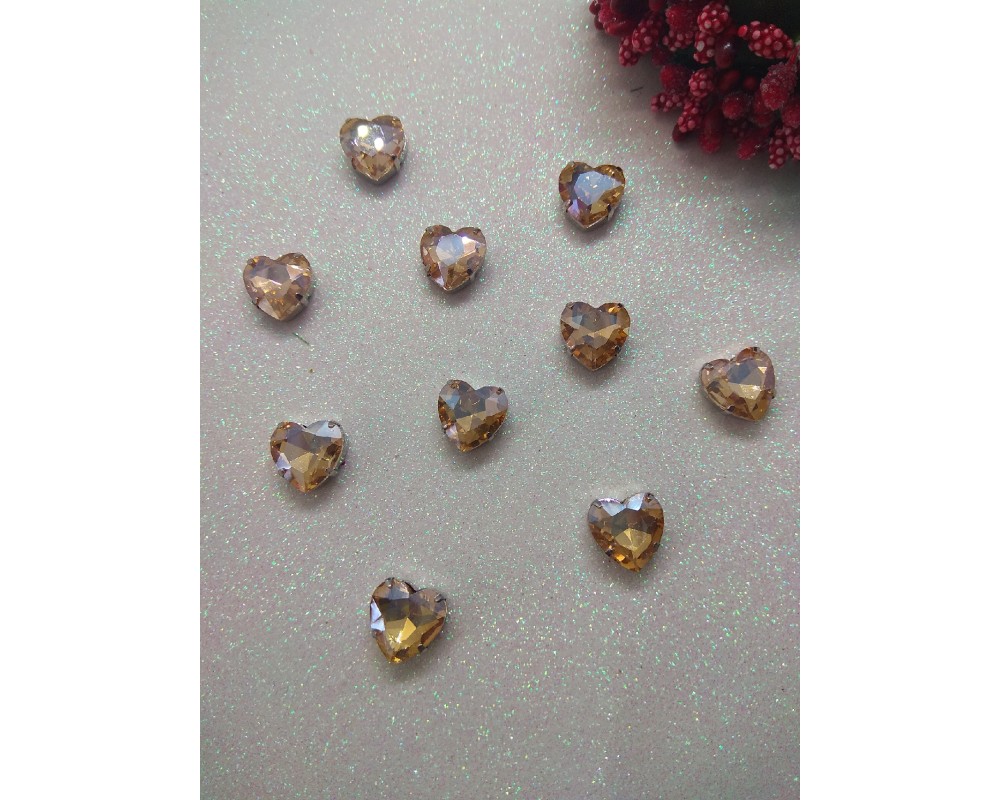 Стразы в цапах "Сердце" 12 мм цв. шампань, цена за 1 шт