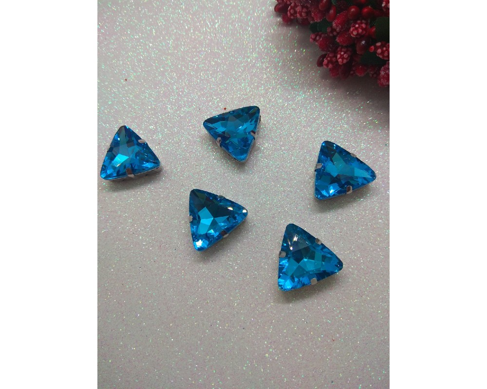 Стразы в цапах "Треугольник" 18 мм цв. голубой, цена за 1 шт