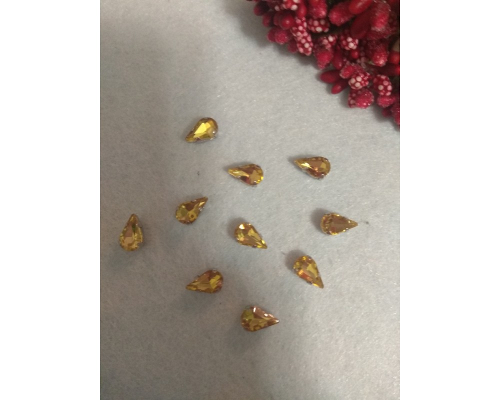 Стразы в цапах "Узкая капля" цв. желтый, цена за 1 шт