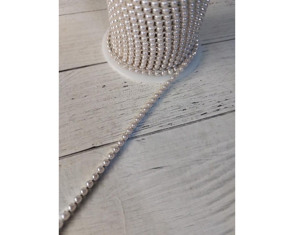 Цепочка с жемчугом 3 мм (ss12) ц\белая в серебряной оправе , цена за 50 см