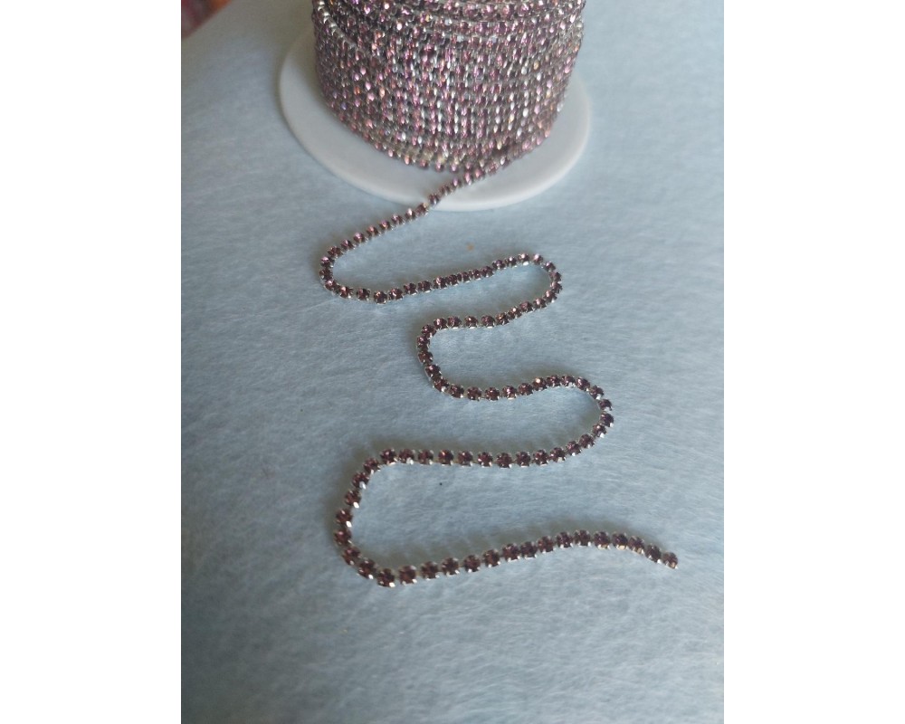 Нить стразовая стекло 2 мм SS6 розовая 25, цена за 50 см