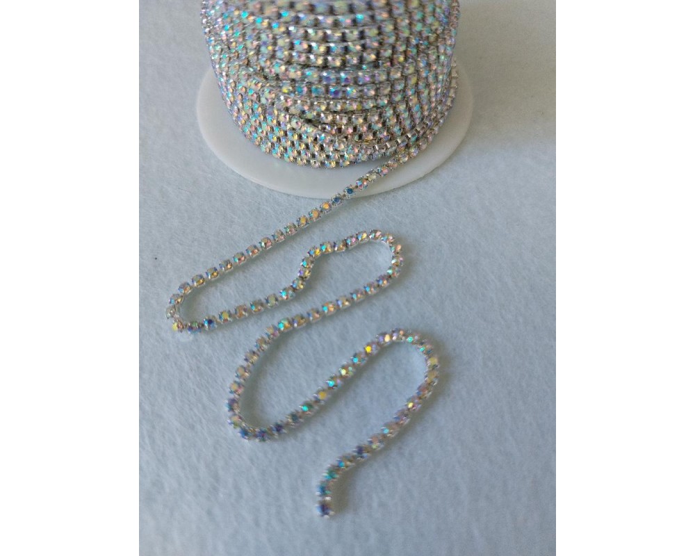 Нить стразовая стекло 2 мм SS6 белая 34 АВ, цена за 50 см