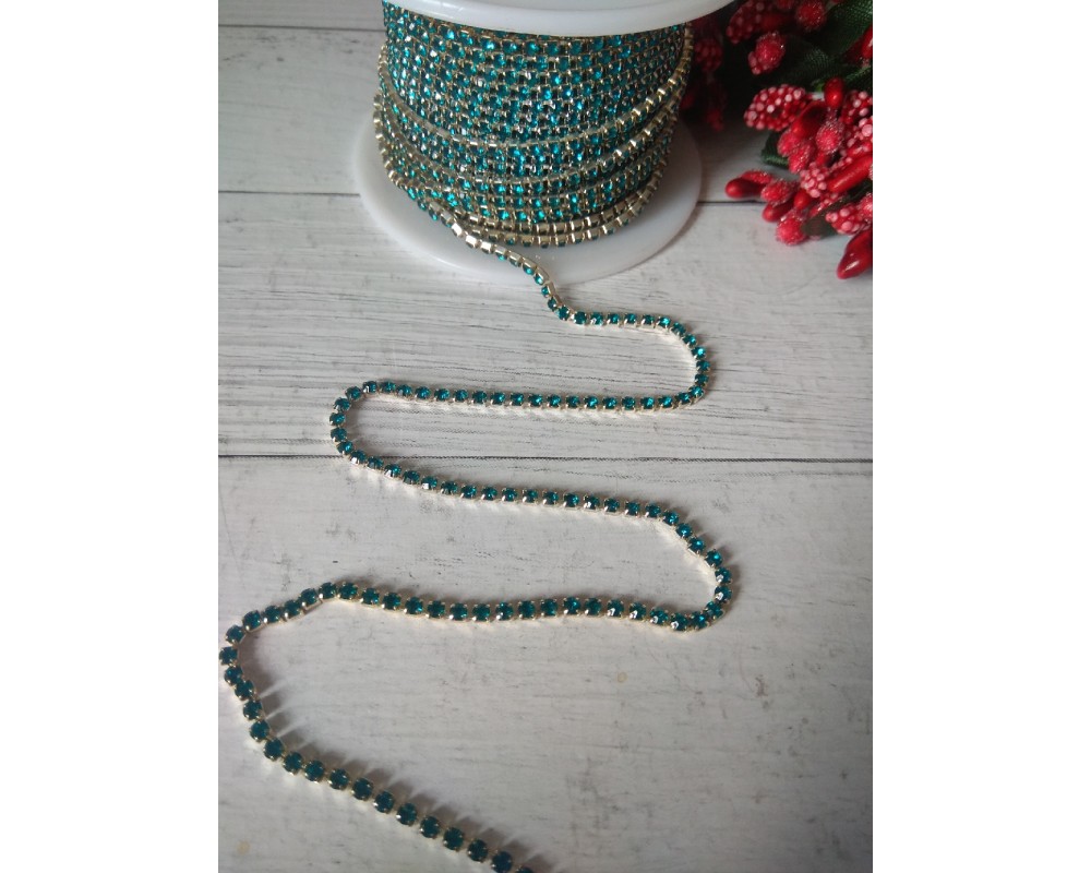 Нить стразовая стекло 2 мм SS6 бирюзовая 20, цена за 50 см