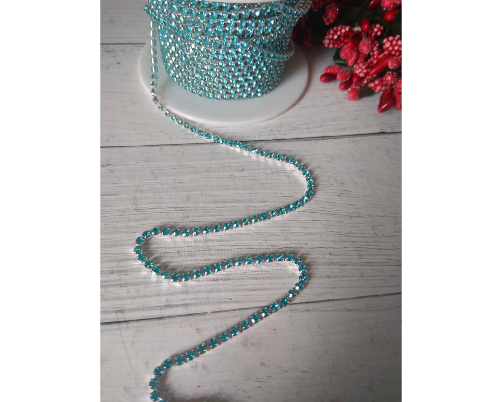 Нить стразовая стекло 2 мм SS6 голубая 8, цена за 50 см