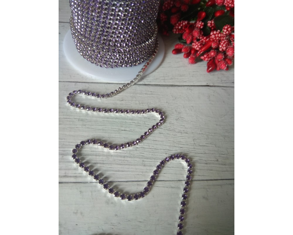 Нить стразовая стекло 2 мм SS6 сиреневая 26, цена за 50 см