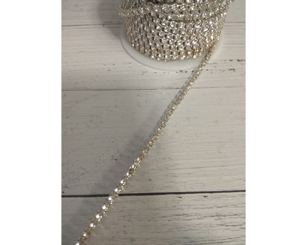 Стразы цепочкой ss12(3-3,2мм) цв. белый кристалл в серебре, цена за 50 см