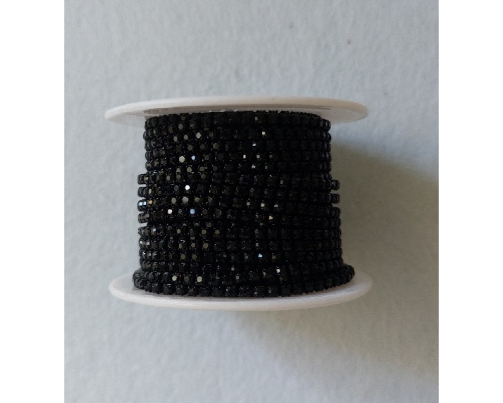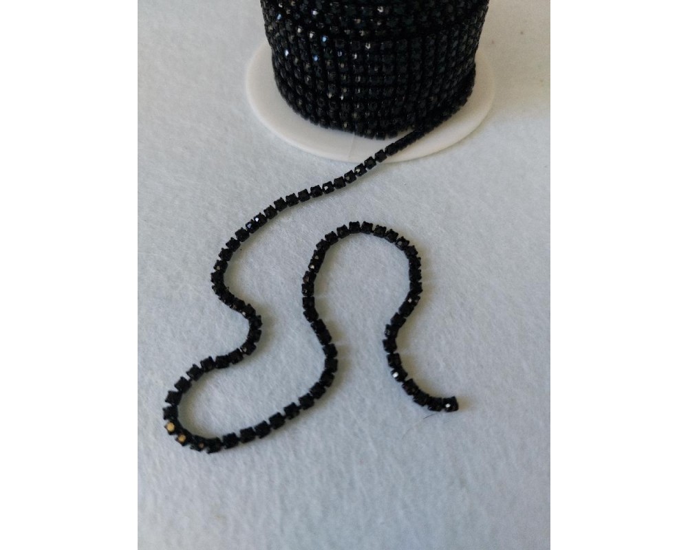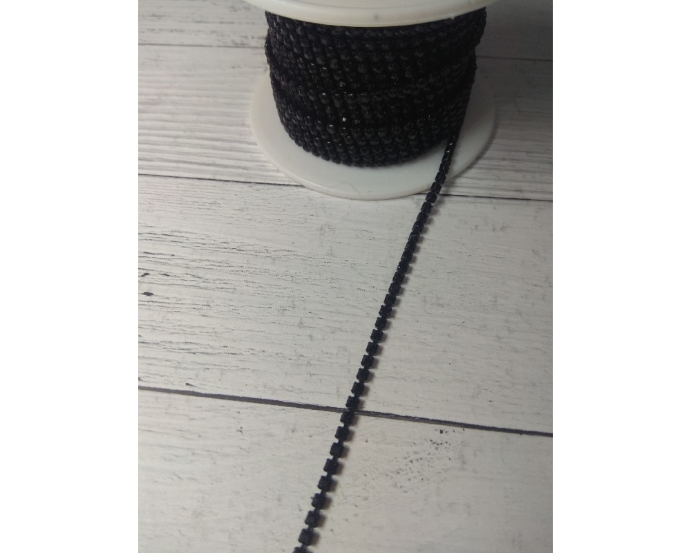Стразовая цепочка 2 мм SS6 черная в черной оправе, цена за 50 см
