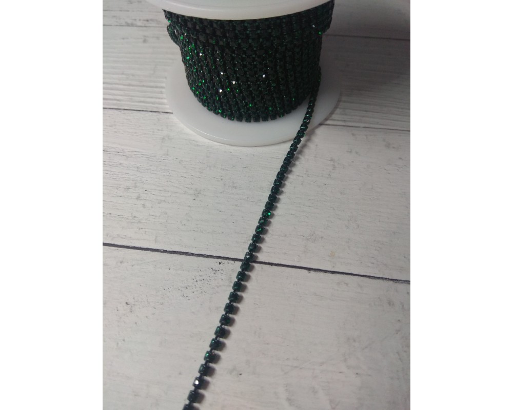 Стразовая цепочка 2 мм SS6 изумрудная в изумрудной оправе, цена за 50 см