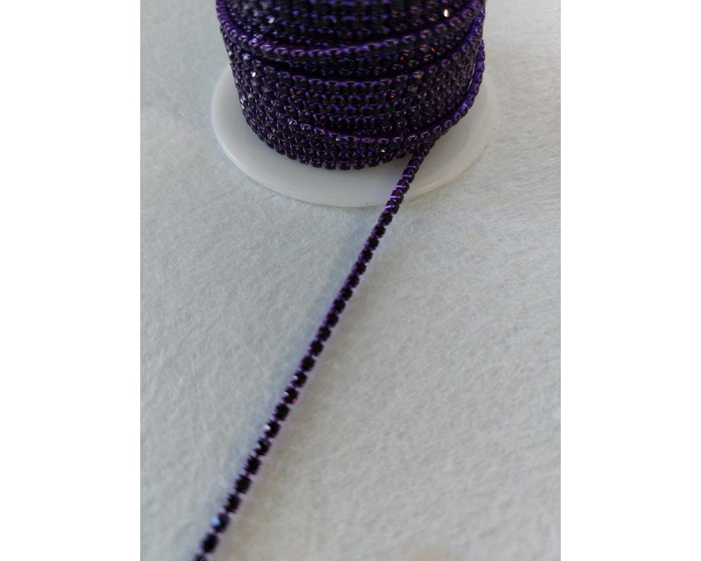 Стразовая цепочка 2 мм SS6 темно-фиолетовая в фиолетовой оправе, цена за 50 см