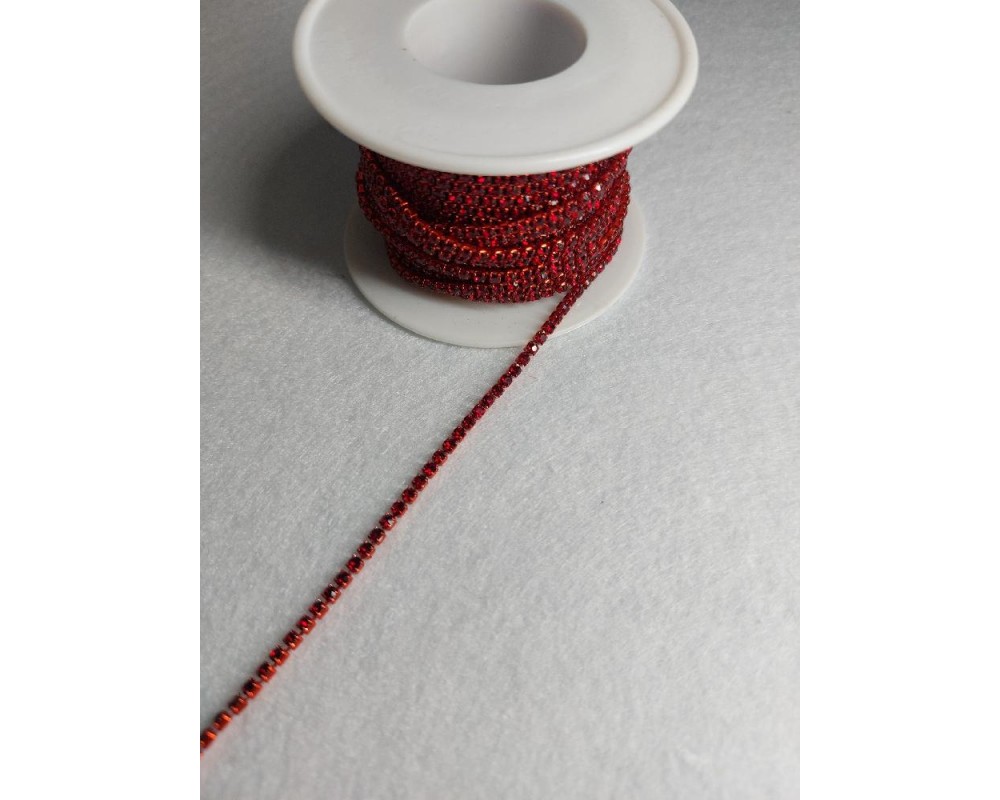 Стразовая цепочка 2 мм SS6 темно-красная в красной оправе, цена за 50 см