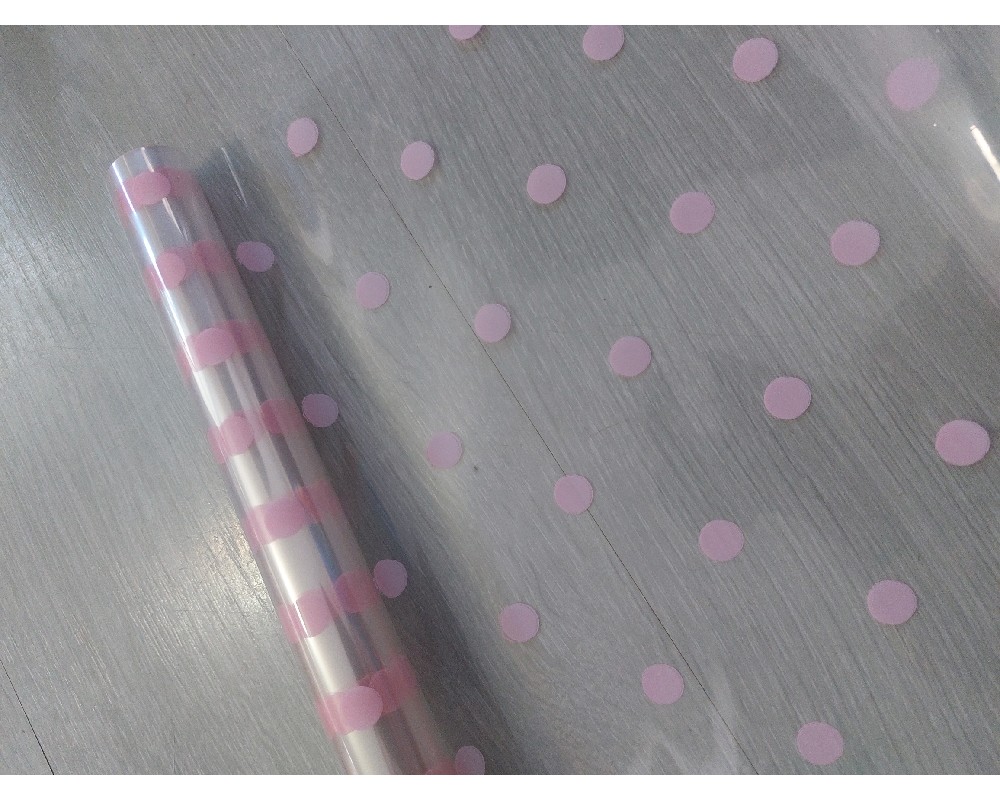 Пленка прозрачная с рисунком "Горох" (розовый) 70см, 200гр, цена за рулон